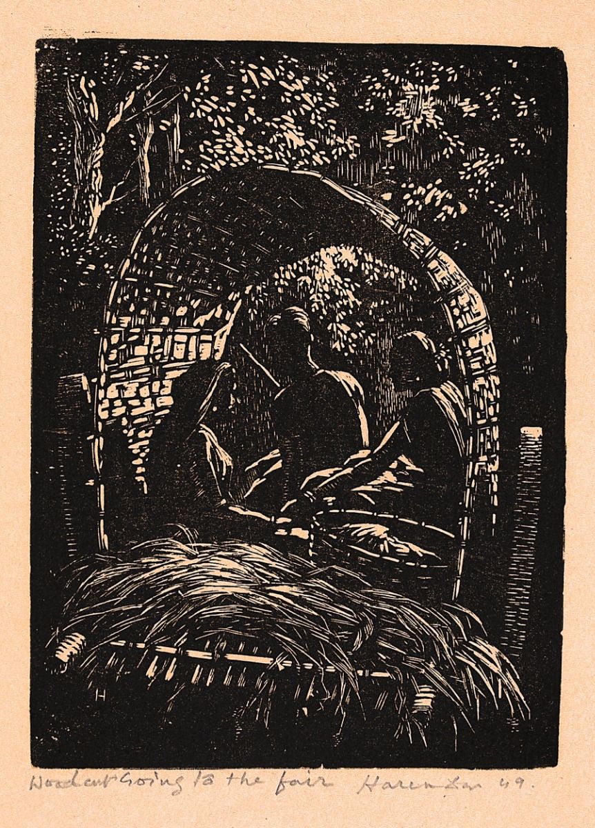 Haren Das was a prominent printmaker and master of academic naturalism, and unlike his contemporaries who were moving away from realism, he remained faithful to this style throughout his artistic career. Having grown up in a farming community in East Dinajpur (in present day Bangladesh), Das extensively documented the pattern of life in the villages of Bengal. In this woodcut on paper, an expert use of light and shadow is made to focus on a family inside a bullock-drawn carriage, leaving for the fair.