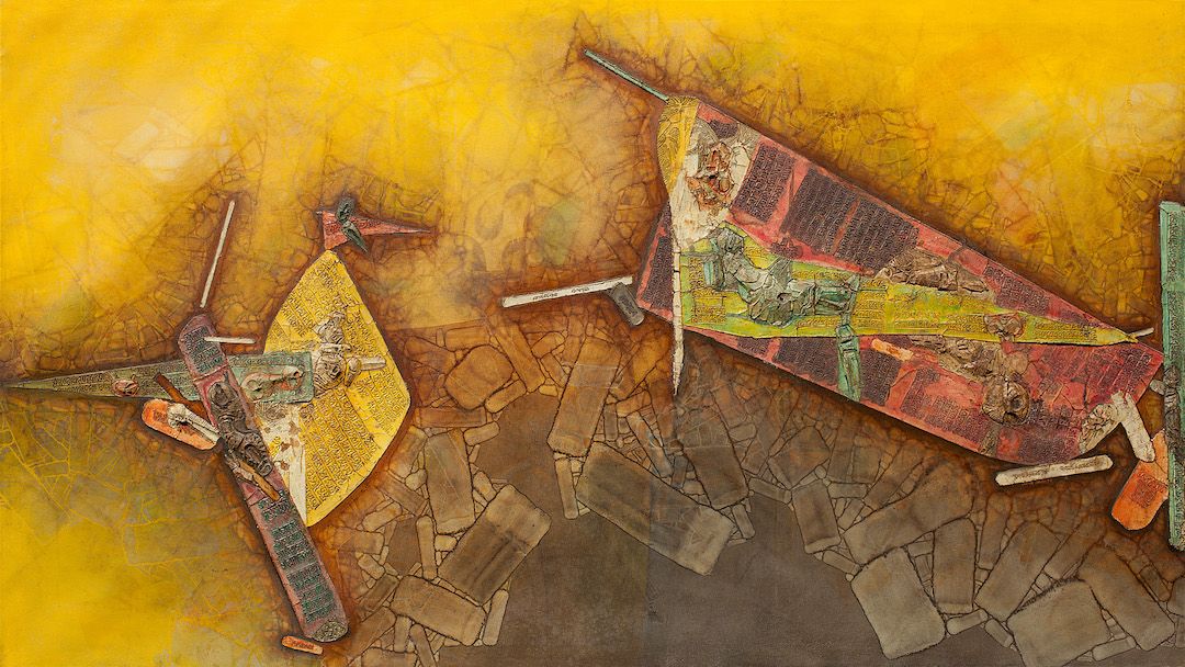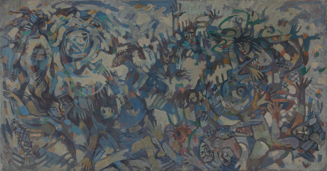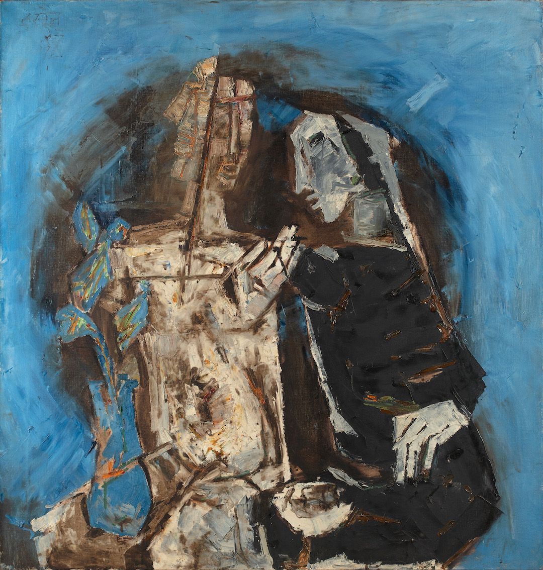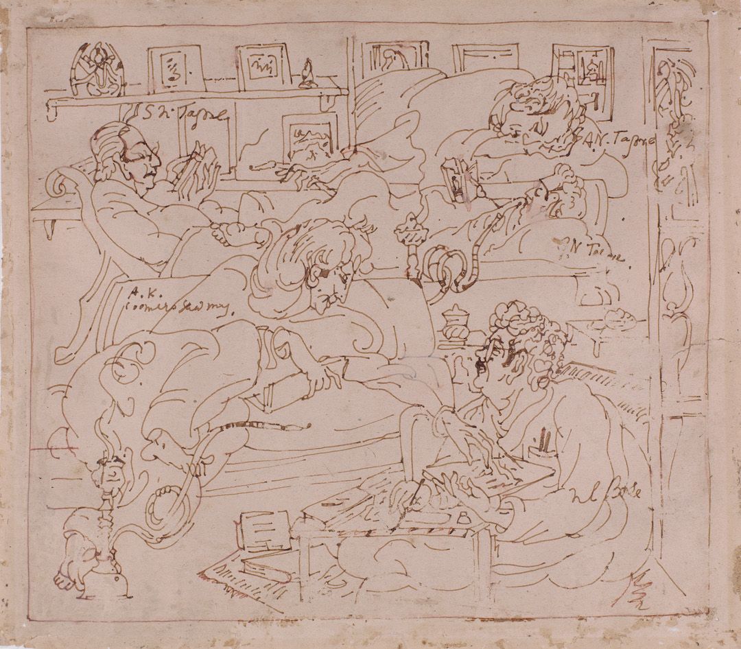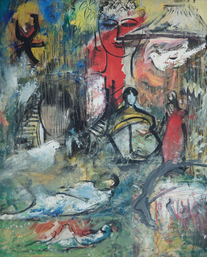 Among the works on view are a superlative family portrait by Raja Ravi Varma—widely recognised as his first ever commissioned painting, making it the first painting ever of modern Indian art; rare works by other National Treasure artists such as Abanindranath Tagore, Nandalal Bose, and Sailoz Mookherjea; lyrical poetic compositions by masters who would go on to be leading lights of art in Pakistan—Allah Bux and M. A. R. Chughtai; Western interpretations of early India through the eyes of Thomas Daniell, and a later work in the genre by Edwin Lord Weeks; a fine Early Bengal work by an unknown artist on Krishna and Radha; a divine love story in the realistic style by M. V. Dhurandhar; an unusual mother-child painting inspired by Christian iconography by Jamini Roy; path-breaking experiments in abstraction by Prabhakar Barwe, S. K. Bakre, Shanti Dave, and Sohan Qadri; a representative work from his important Boitorini series by Nirode Mazumdar; peak career works by the Progressives and their adherents such as F. N. Souza, M. F. Husain, Krishen Khanna and Ram Kumar; a sculpture by early modernist Dhanraj Bhagat; and a unique indigenist canvas by Madhvi Parekh featuring her signature playful figures.