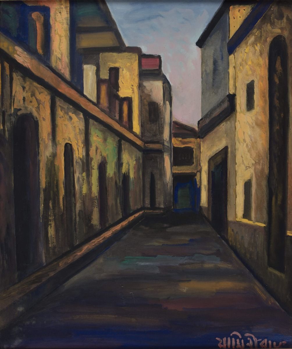 This Untitled work in distinct impressionist brushstrokes is likely to fox admirers of Jamini Roy’s art for its vocabulary and composition that are far removed from those in his well-known folk-inspired works. Yet, it is a testimony of a time when Roy was yet to rediscover his art and was painting in the popular European style he learnt at college. Nevertheless, the work impresses for the surety of its lines, a major determiner of his later oeuvre. The most important highlight of the work, however, is the conspicuous human absence—a minimalist approach that Roy would employ to great effect later on.